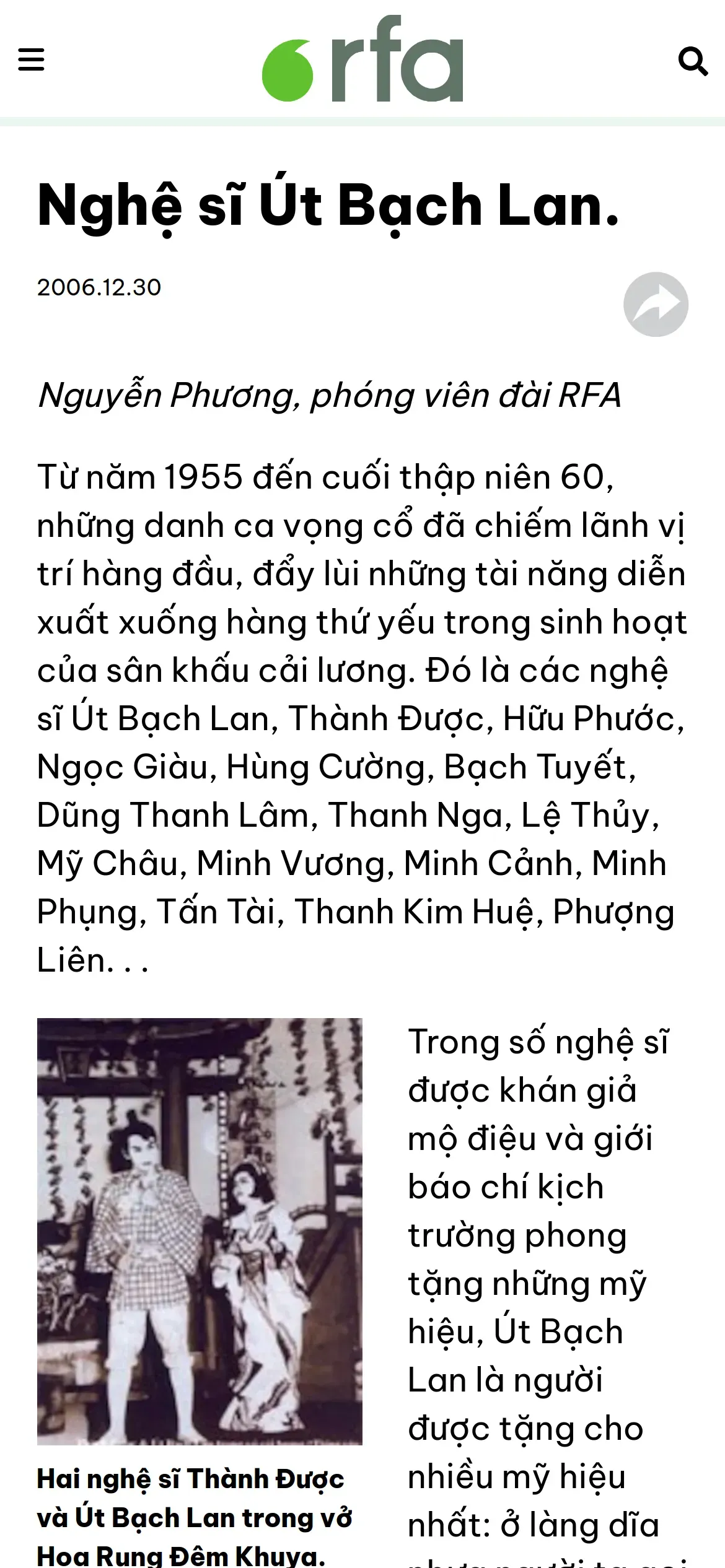 https://www.rfa.org:443/vietnamese/news/programs/TraditionalMusic/FamousActressUtBachLan_NPhuong-20061230.html