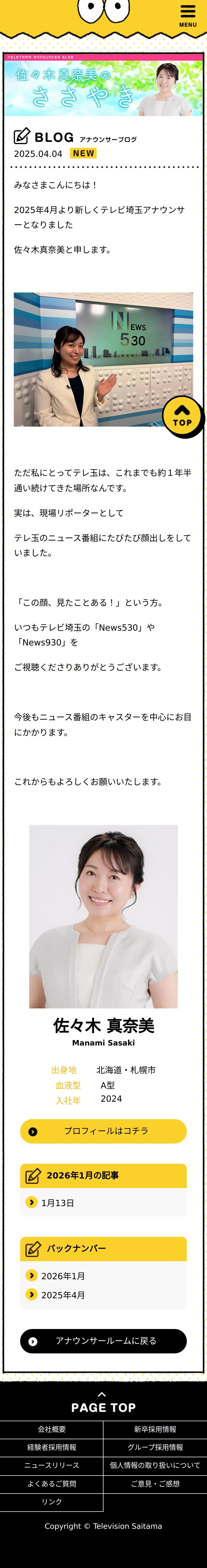 https://www.teletama.jp:443/announcer/manami_sasaki/blog/20250404.html