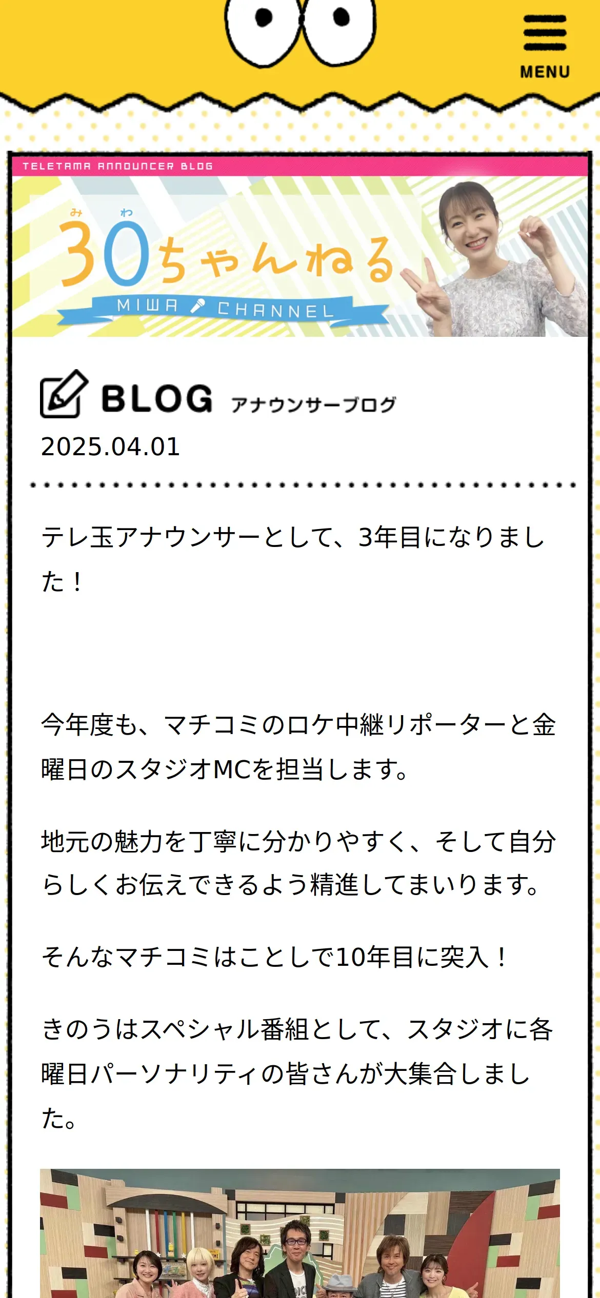 https://www.teletama.jp:443/announcer/miwa_noguchi/blog/20250401.html