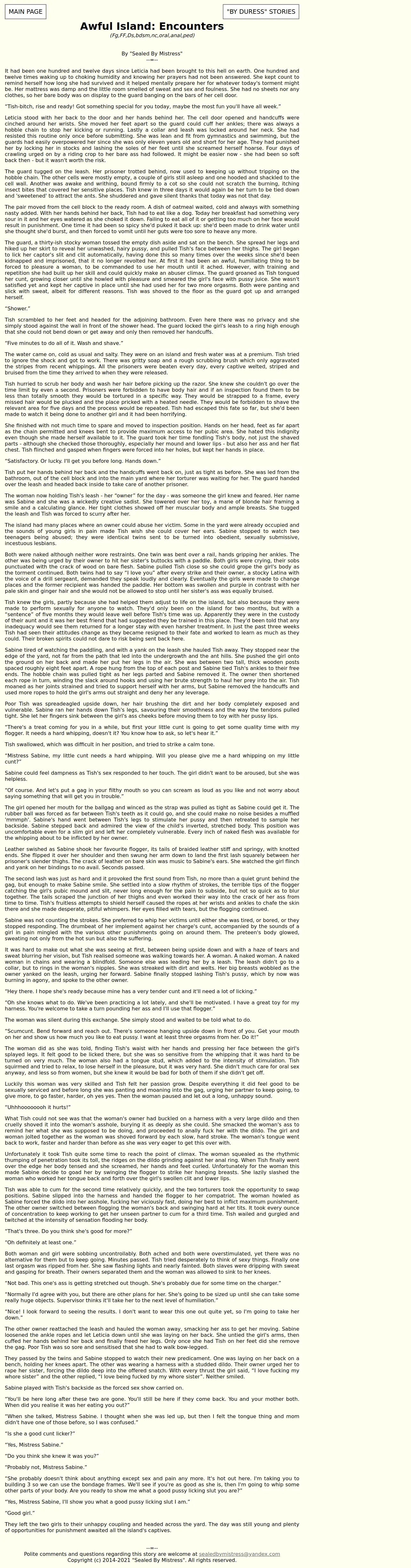 https://www.asstr.org:443/~Sealed_By_Mistress/story_awful_island_encounters.html