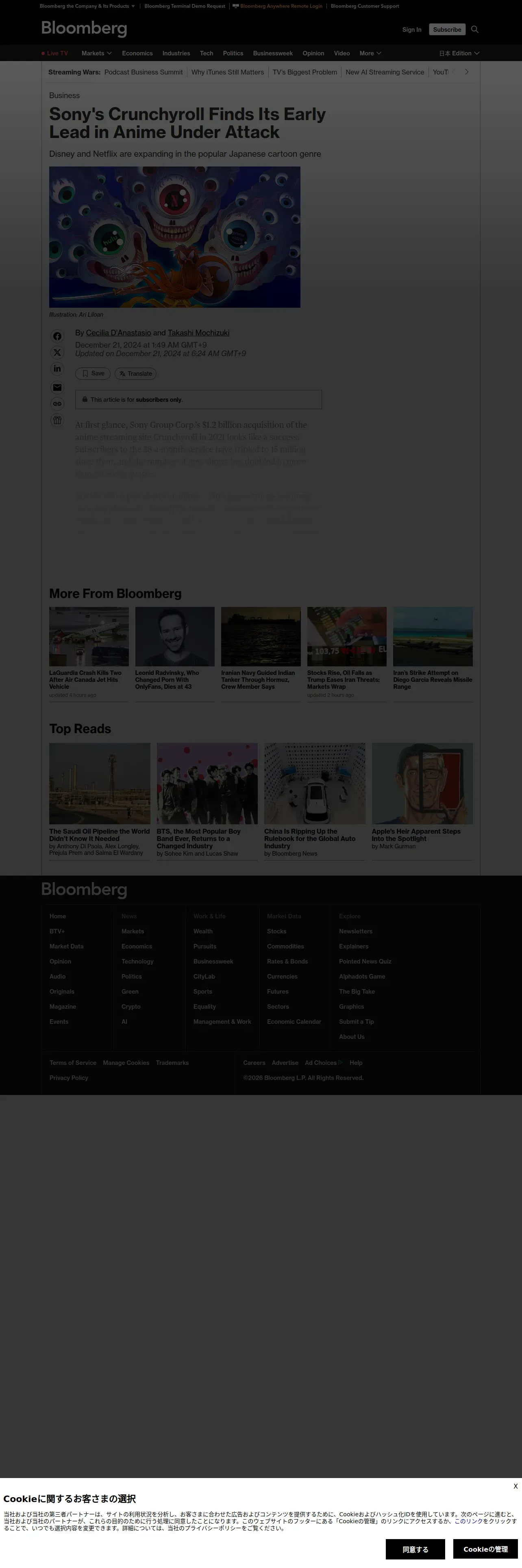 取得元URL: https://www.bloomberg.com:443/news/articles/2024-12-20/sony-s-crunchyroll-finds-its-early-lead-in-anime-under-attack