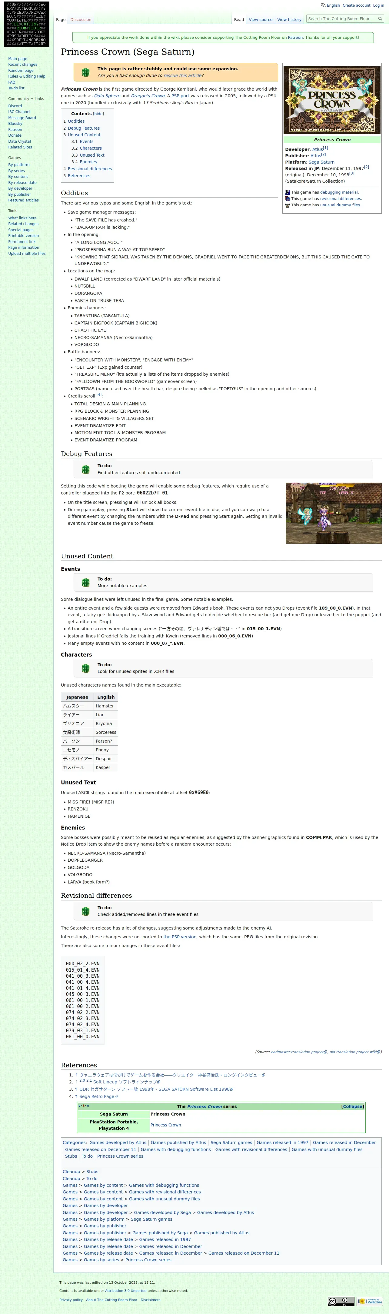 https://tcrf.net:443/Princess_Crown_(Sega_Saturn)