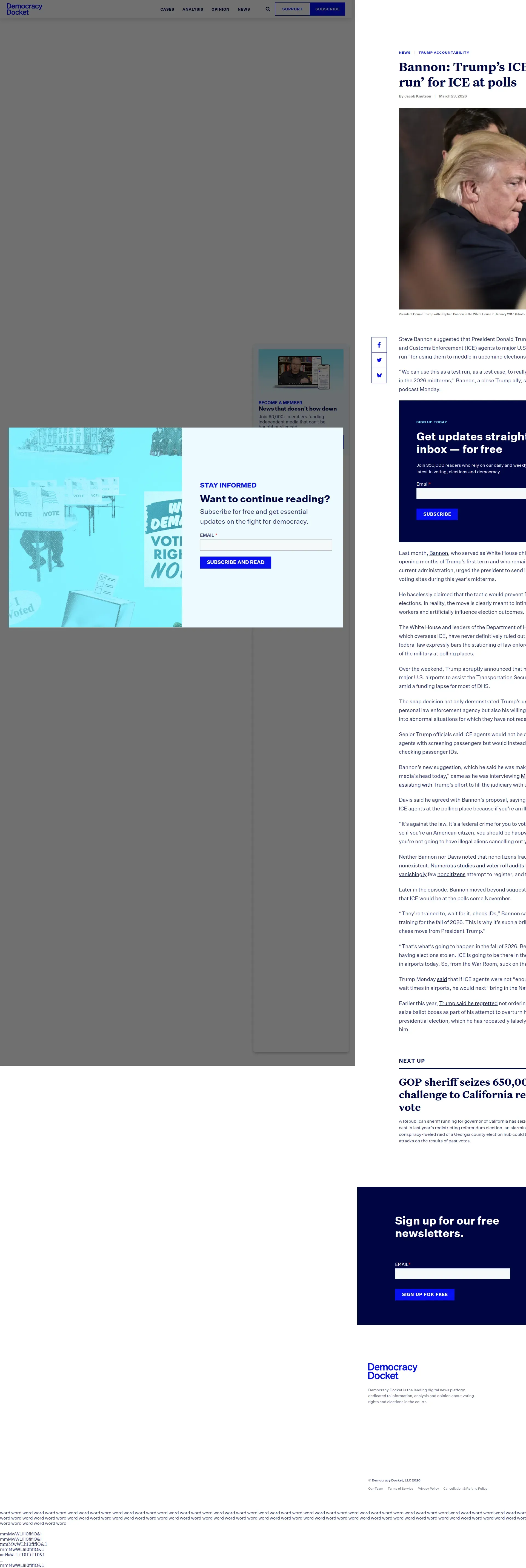 https://www.democracydocket.com:443/news-alerts/bannon-trump-ice-airport-deployment-test-run-2026-midterm-elections/
