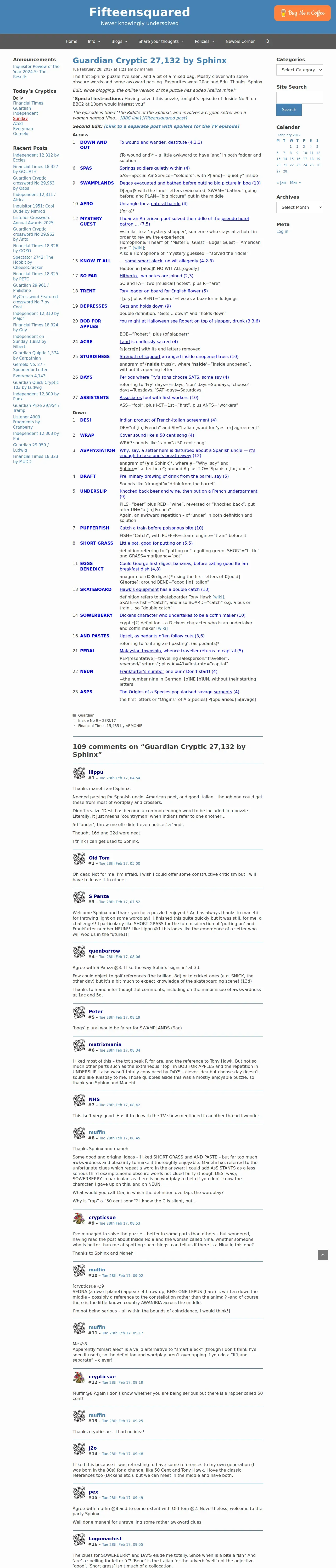 https://www.fifteensquared.net:443/2017/02/28/guardian-cryptic-27132-by-sphinx/