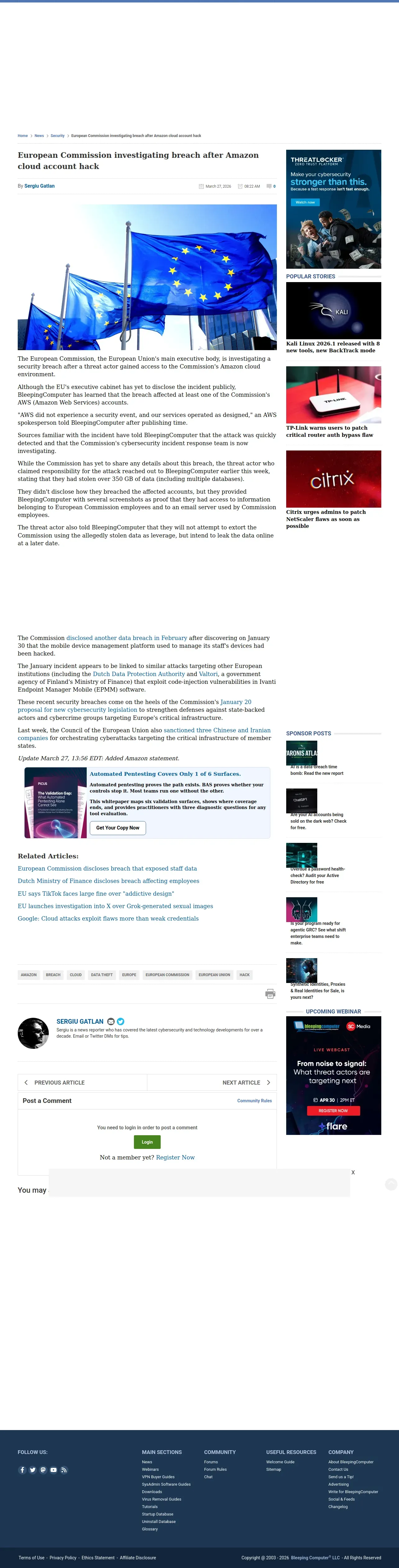 取得元URL: https://www.bleepingcomputer.com:443/news/security/european-commission-investigating-breach-after-amazon-cloud-account-hack/