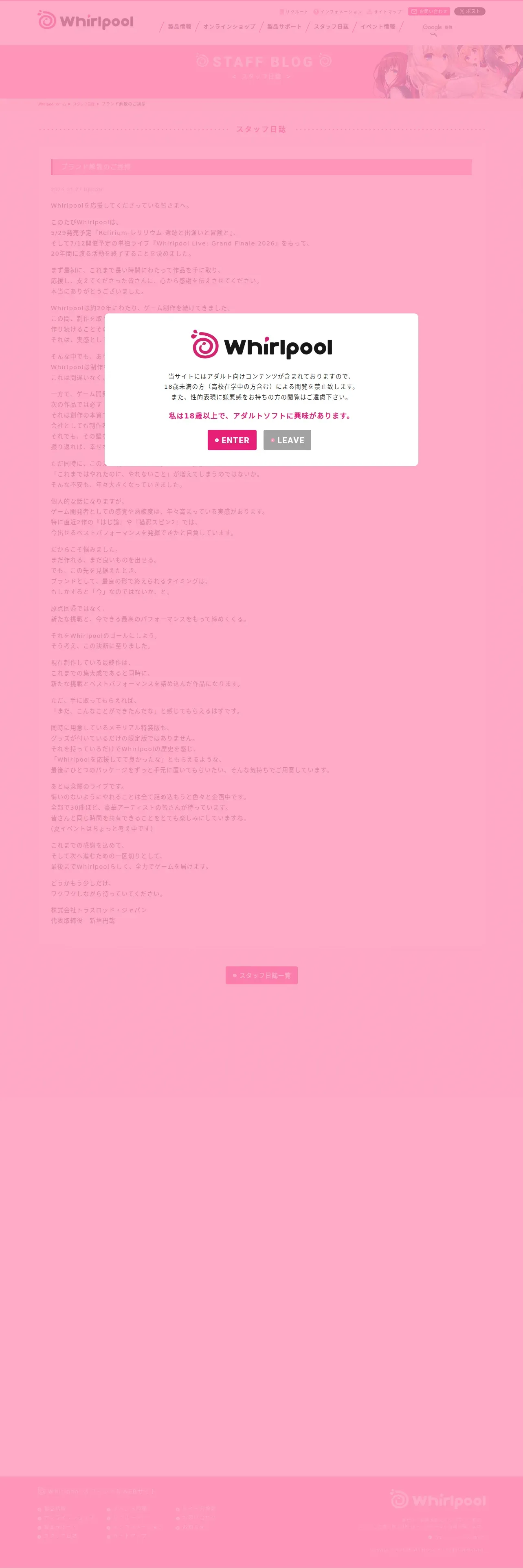取得元URL: https://whirlpool.co.jp:443/release/blog/blog20260127/