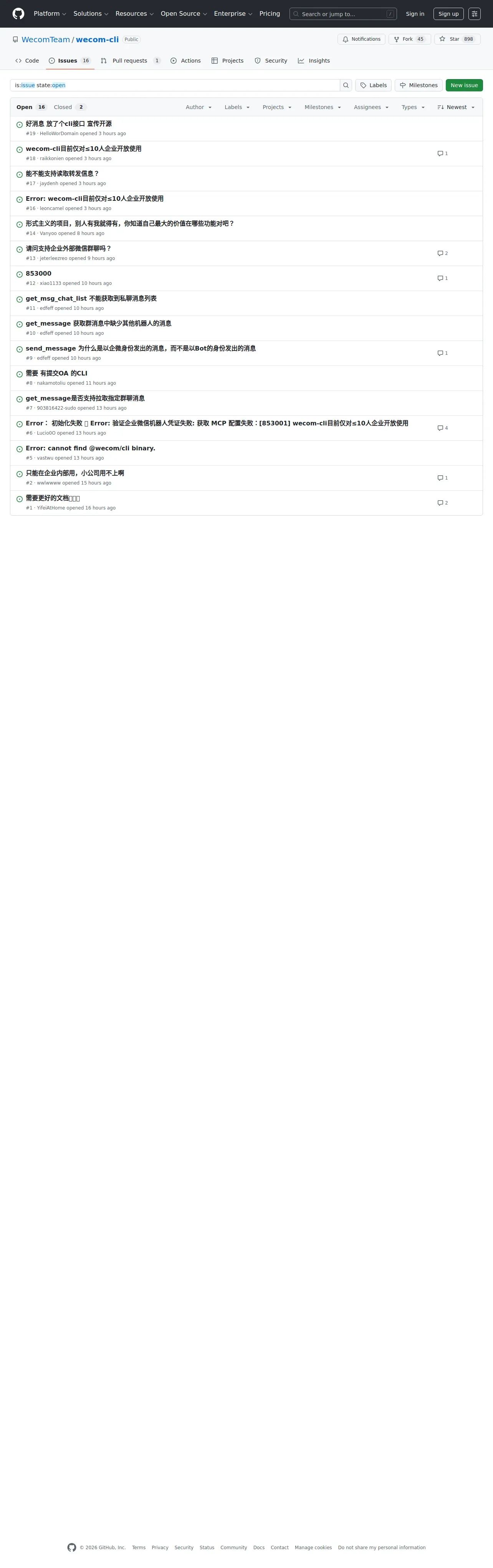 https://github.com:443/WecomTeam/wecom-cli/issues