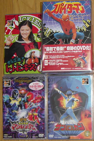 今日届いたDVD。レッドビッキーズにサンバルカンにマジレンジャー。そして最初の発売予定日から1年待たされた東映版スパイダーマンのDVD-BOX!!ついに来た!!! 実際のところ、レッドビッキーズの映像ソフト化だって結構な事件ではあるんだが、スパイダーマンの解禁にはかなわない。これが出せたという事は、当然現在封印状態となっている「バトルフィーバーJ」のDVD化も仮定の話じゃなくなるって事ですよ。そして来年2月には超合金魂バトルフィーバーロボの発売も決定しているので、これの売り上げ成績によっては超合金魂レオパルドンの発売も夢ではないと思いたいのだ。