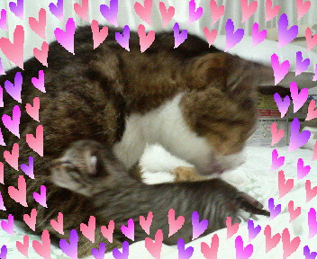 仲良く川の字に並んでメリーのお乳吸ってマス(^w^)
