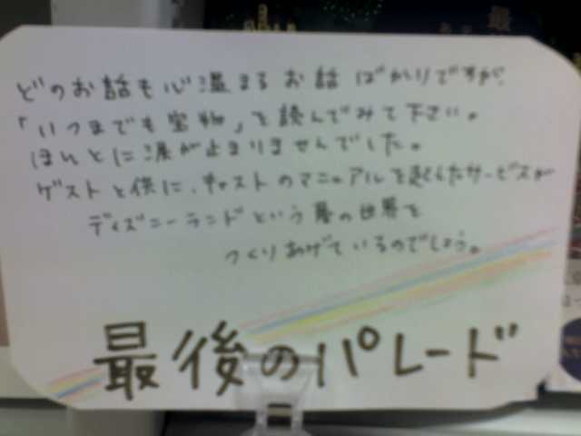 最後のパレード 7刷35万部突破しました! 本当にありがとうございます。 今後も週に1度の重版、週末に広告を組んでいきます。 宜しくお願いします。 以下は書店員様が書いてくださった手書きPOPです。 ありがとうございます。 | 重版情報 | 01:56 PM |
