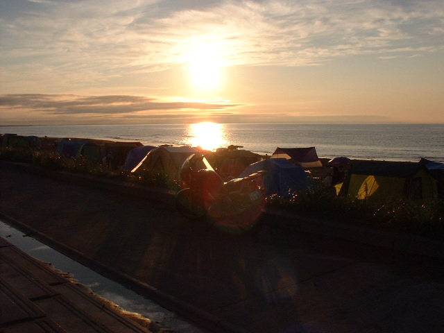 オホーツクに静かに沈んでいく。でっかい太陽が旅の情緒を心地よく刺激して
