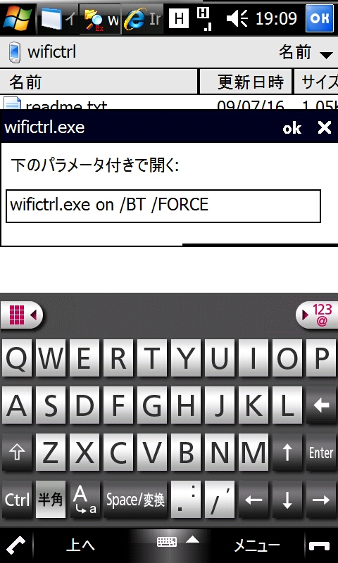 「wifictrl.exe on /BT /FORCE」と入力してみます。