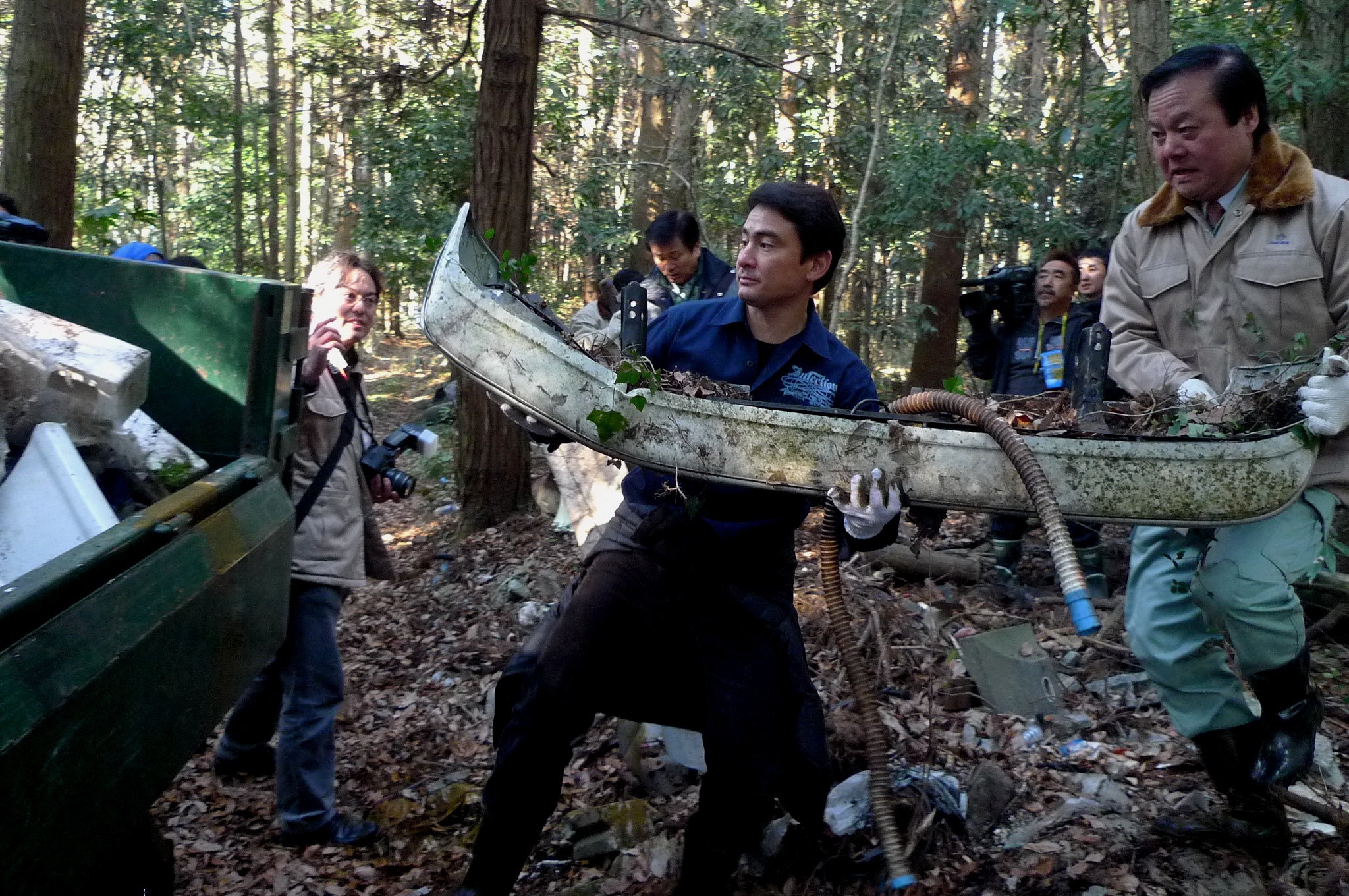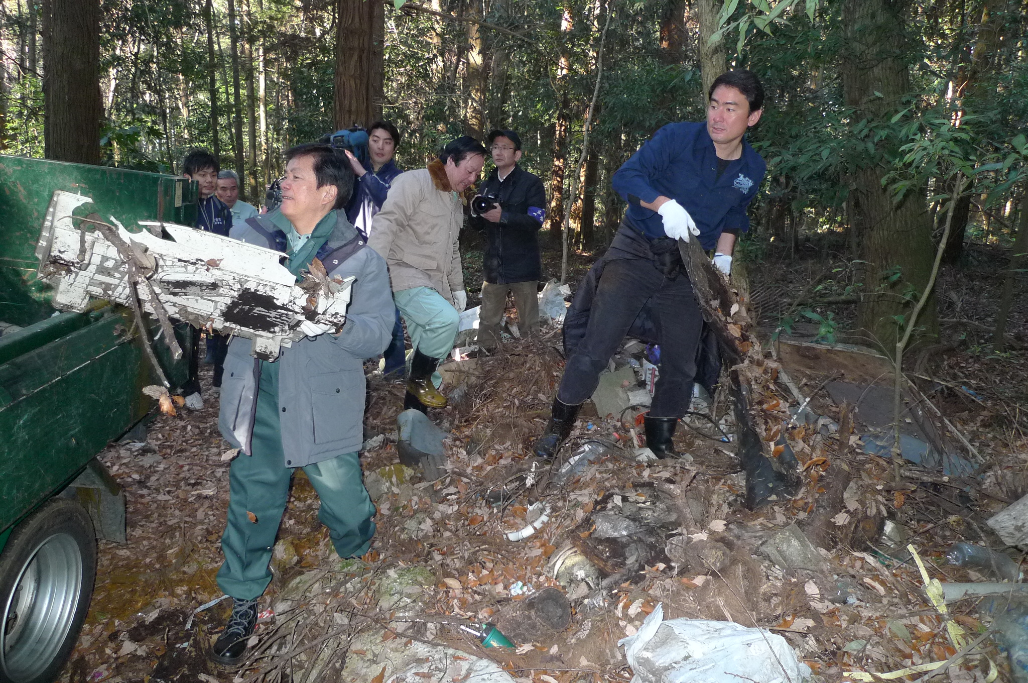 私の提案に森田知事は「私は腹をくくっています。やりましょう」とその場でお返事を頂きました。その約束が実現し森田知事と二度目の清掃活動を行った。特に今回は不法投棄が酷い現場。森田知事は「なんだこれは!酷いじゃないか!」と報道陣の前で怒りを露わにし、参加者と一緒になってタイヤなどの粗大ゴミをトラックの荷台に運んでくださった。