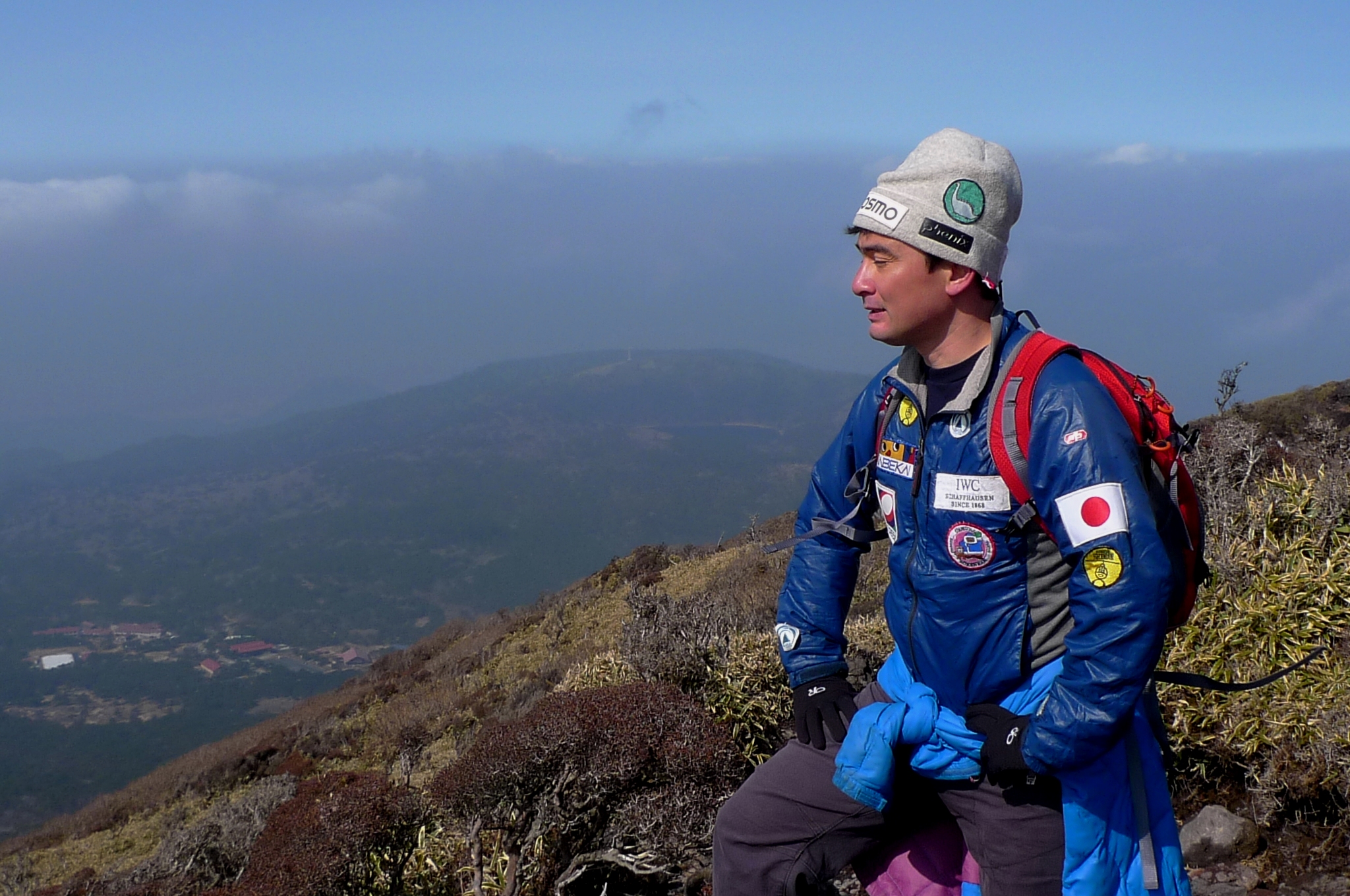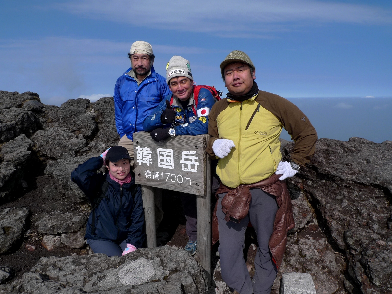 そして旅の最終日、ようやく晴れ、韓国岳へ。至る所に噴火した跡の噴火口があり、その噴火口が今では湖になっていて美しい。2時間前後で韓国岳に登頂しましたが、ボルネオのキナバル山以来の登山でなんとも気持ちが良かった。途中、下山してくる登山者と目が合い「えっ!野口さんですか!野口さんもこんな山に登るのですか!」と驚きの声が何度かありましたが、そりゃもちろんですよ。標高の高い山も面白いけれど、山の魅力はなにも標高だけではありませんよ。僕が最も好きな山は白神山地。標高的には極めて低いけれど、あの命溢れる白神山地の森の中にいるとなんとも癒されるし、自然のエネルギーを全身で感じる事ができる。山の魅力は本当に様々。標高だけではないんだなぁ〜。確かに僕も若い時はヒマラヤのような高峰ばかりに目がいっていましたけれど、今は違う。この韓国岳も素直に楽しいと感じながら登っていました。そして1700Mの山頂ですが、登頂すれば今まで登ってきた他の山と同様に感動するものです。