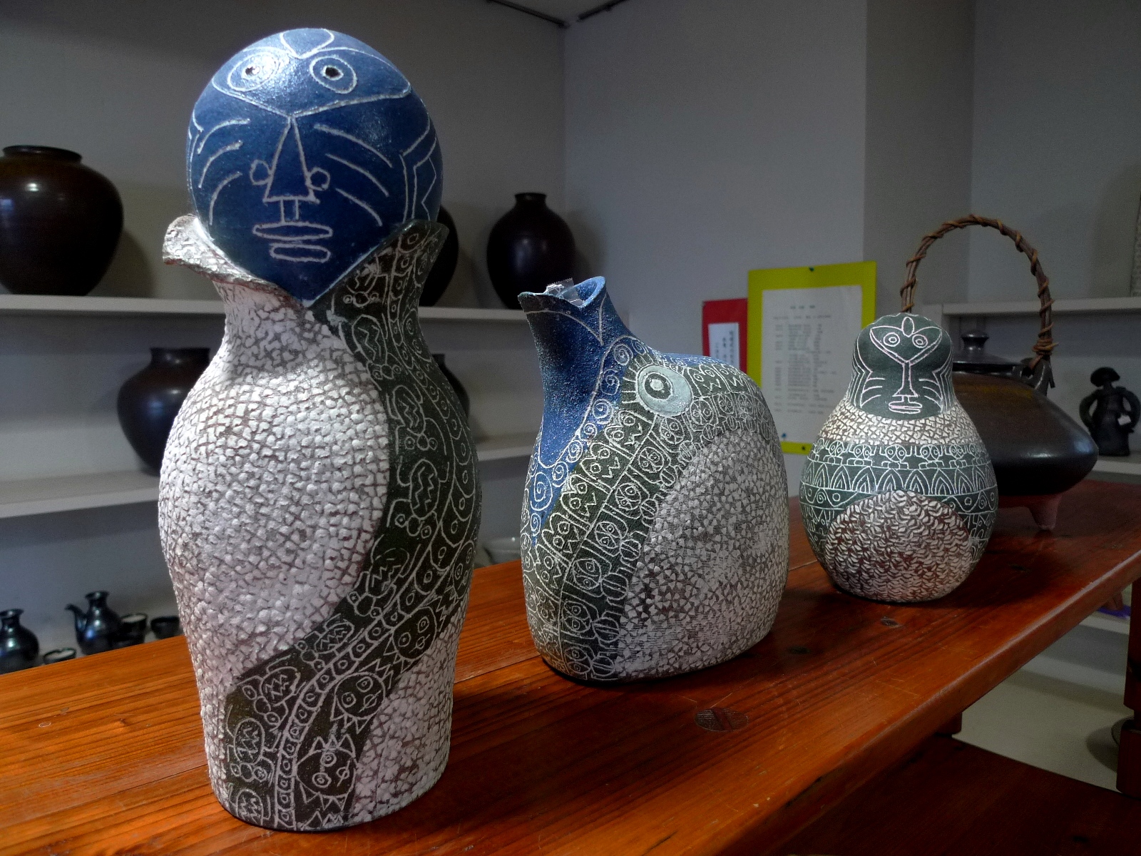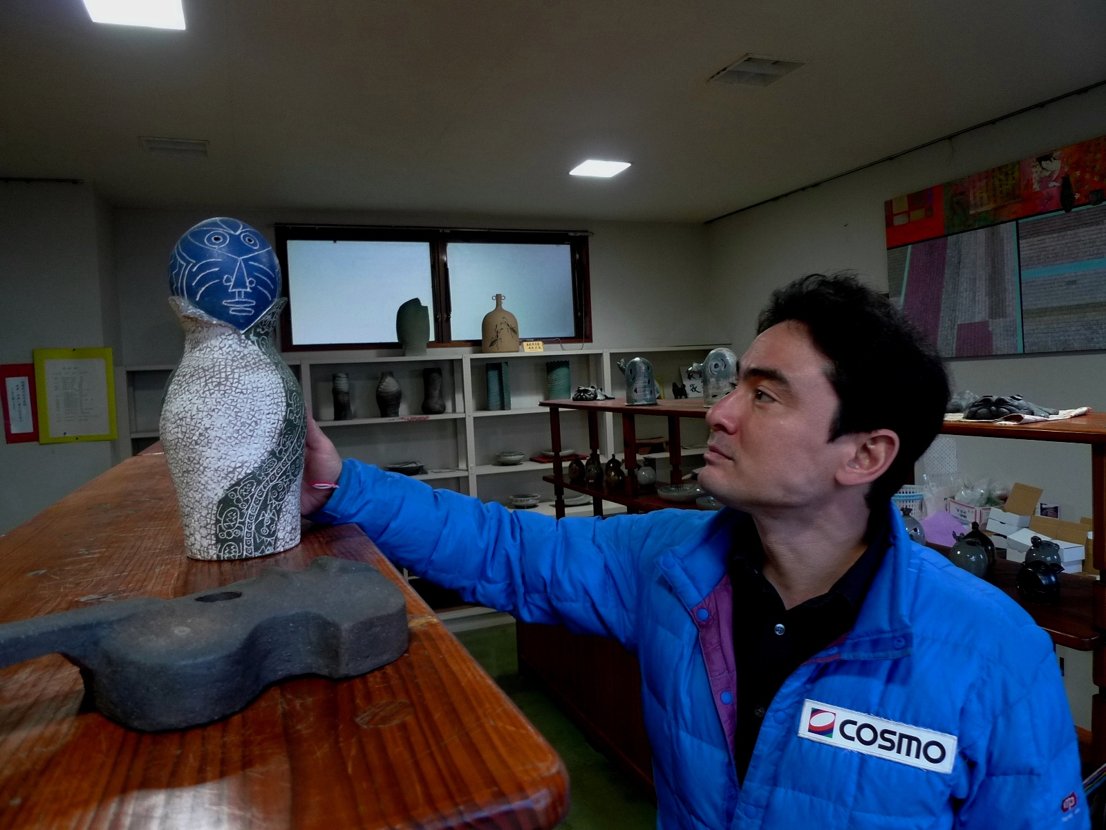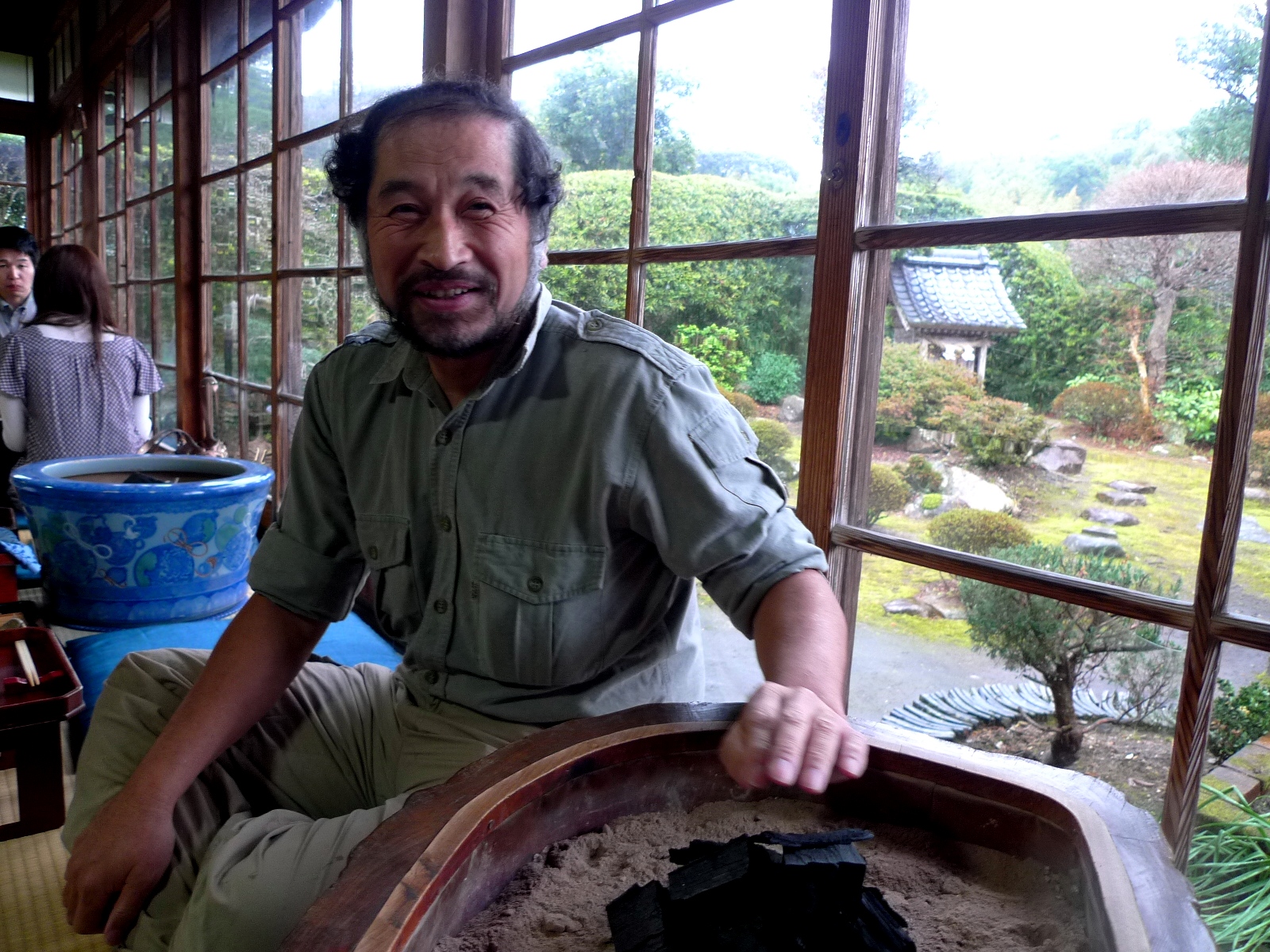 道中、焼き物をやっている「陶芸の里 あすか」というお店を発見。ただ、定休日であったのでパンフレットの書いてある電話番号にかけてみた「いいですよ!」と。早速でかけ、ご主人が焼かれた作品を拝見させて頂きましたが、なんとも他にはない個性的な作品が目に飛び込んできた。「これは!」と壺を1つその場で購入。これだから旅は面白い。ふらりと立ち寄った所に大きな出会いがあったりする。ご主人の名前は桑原武満さん。話しが盛り上がり、紅茶まで頂きました。後から分かったのですが、実は桑原さんの息子さんが鹿児島で行われた私の講演会にいらっしゃっていたとのこと。その息子さんが「野口さんの講演会に行ってきた」といったような事を電話で聞いたご主人の桑原さんが「えっ!野口さん、つい先ほど家に突然来たよ!」と、まあ〜運命といいますか、出会いの運とは不思議なものですね。