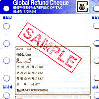外国人旅行者は、「TAX FREE SHOPPING」(グローバルリファンド社)という表示のある店で3万ウォン以上購入した場合に限り、付加価値税が免除されます。ひとまずその場では付加価値税を含めた価格で全額支払い、後で空港の税関で申告して付加価値税分の払い戻し(リファンド)を受けるシステムです。この制度を「事後免税制度」といいます。 韓国には有名ブランド店、デパート、土産物店をはじめ、約600店舗を数える加盟店があります。外国人旅行者は、知っておくと得する制度です。