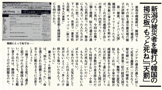 「天罰が下ったんだ。世界で一番卑怯な民族、チョッパリ(豚の足=日本人の蔑称)」