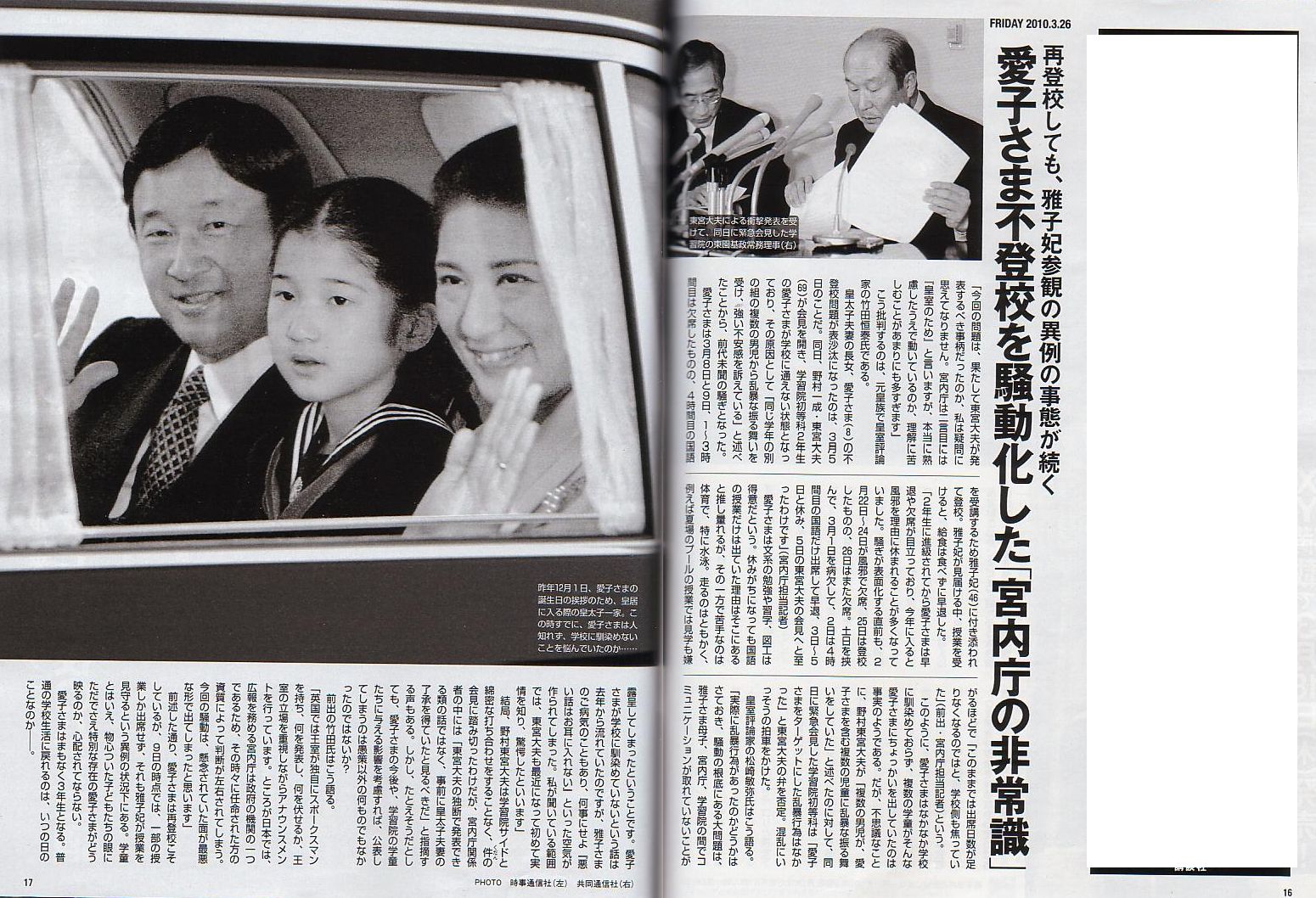 「愛子さまはクラスのリーダー的存在」と記事にした記者。。ちゃんと取材して書いたのかな?脳内妄想に基づいて書きました、とか?
