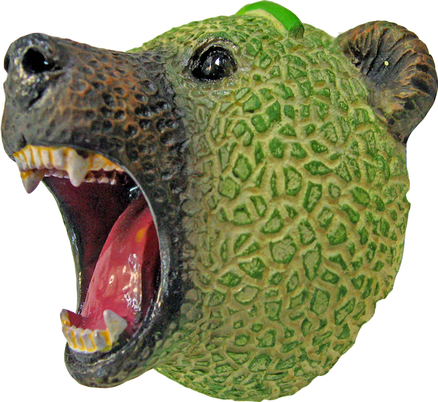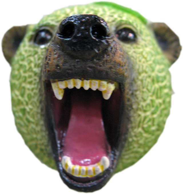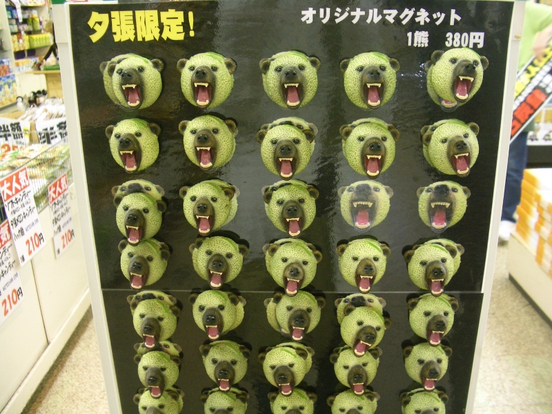北海道夕張市の国道沿い、北海道物産センターに「メロン熊」が出没している。夕張特産のネットメロンを模した直径約5センチの球体から牙をむくヒグマだ。