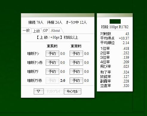半熟荘→天鳳 と名称変更しましたが、順調に会員数が増えたみたいで、今では夜中でも卓が立つようになり無料版ですが、今でも遊ばせていただいております。
