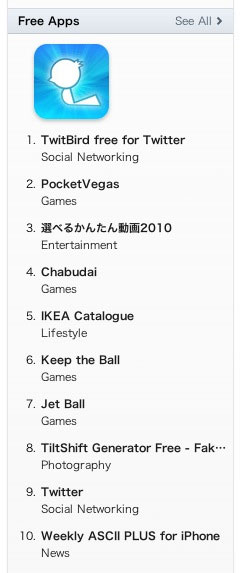 TwitBird became #1 because its previous version stopped working and was _not_ automatically updated (it had to be manually removed and reinstalled). So many people are angry about it in the Japanese App Store reviews. Have you even read them?