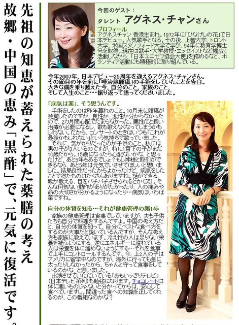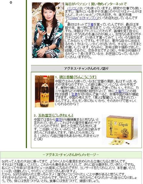 アグネス・チャンこと陳美齢氏は五色霊芝の輸入・販売元であるビーグリーンの取締役ですが