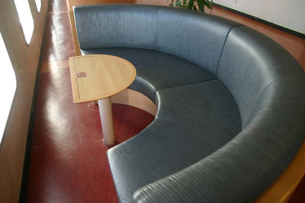 乗船時間が比較的短く、寝るだけの航路なのであまり探索ができませんが、ちらっと見たところ・・・あった、あった、ものすごく細かいところですが、ソファーの色が違うところ!(写真)