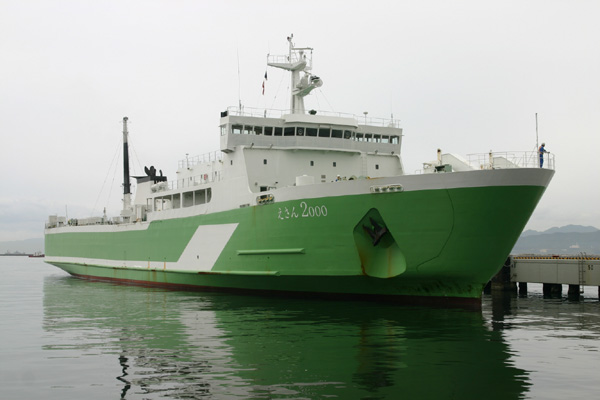「えさん2000」の下船が完全に終わったところ、次は白い大きな物体、「ナッチャンWorld」が見えてきました。