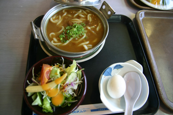 W.Oはそのカレーうどんセット(写真)にして、私はこれまた数量限定メニューのとんこつラーメン(おいしいよ)と、なぜかさっぱりしたものが食べたかったので、メロン(甘いよ)が入ったフルーツセットも取りました。
