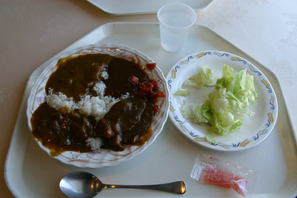 商船三井の夕方便の昼食は、以前はカレー、中華丼(←具沢山でおいしい)、牛丼など数種類の中から選択しますが、この日はカレーバイキングでした。