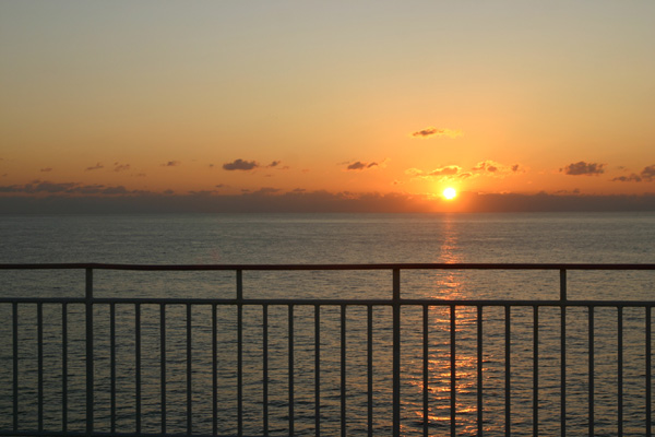 写真は、「さんふらわあさっぽろ」より撮影した日の出(10月)
