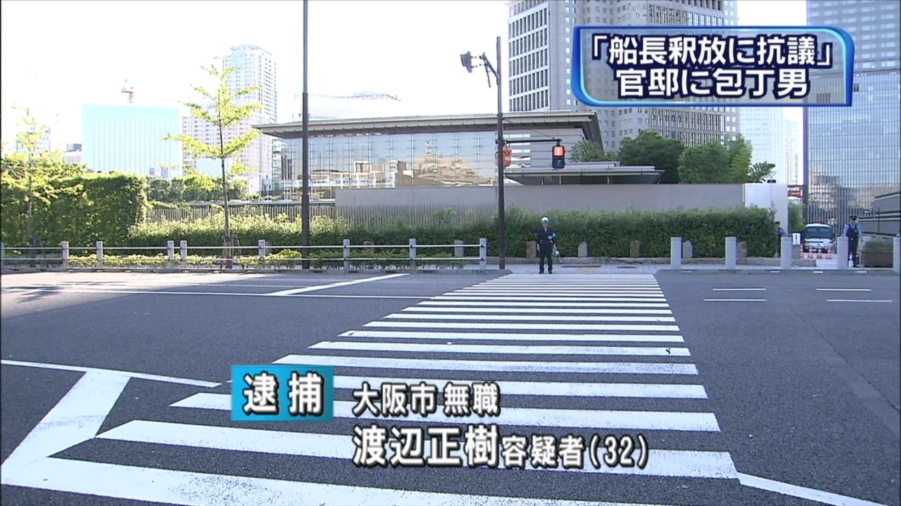 海上保安庁の巡視船に衝突した疑いのある中国漁船の船長の釈放に抗議するため、総理官邸を訪れた男が刃物を所持していたとして、警視庁に逮捕されました。