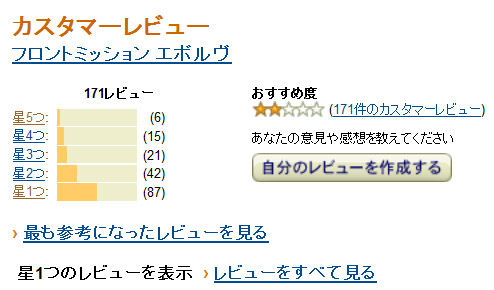 9月26日3:30現在、『Amazon』には171個のレビューが書かれており、そのうち6個が5つ星で、87個が1つ星になっています(5つ星が最高得点)。つまりほとんどの人が最低点をつける状態となっています。
