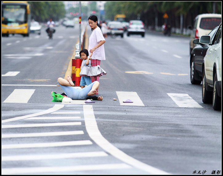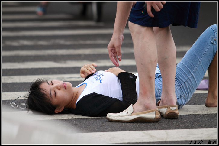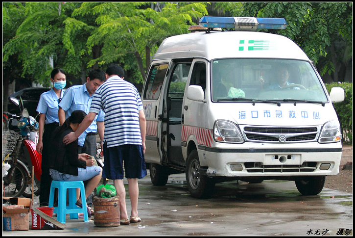 一昨日 8/8の朝九時頃、 海南省海口市の長堤路で若い女性が熱中症で倒れているのが