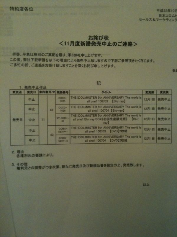 あの事件以降、アイマス関連のCDの予約が減っていることが判明