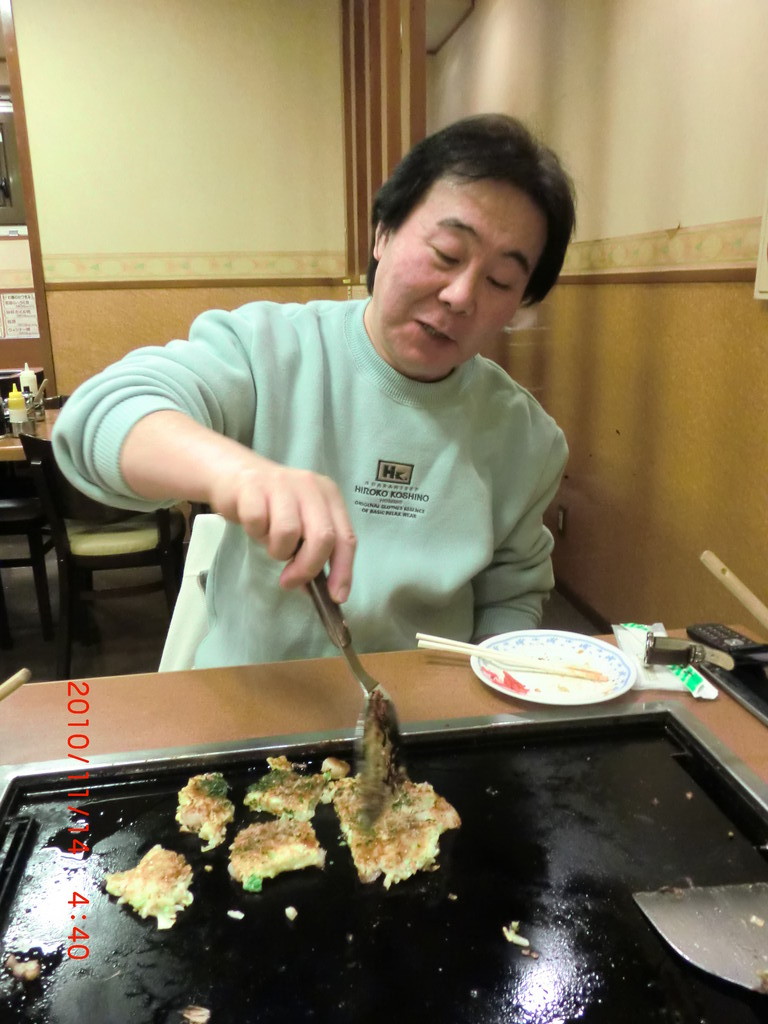 で「お好み焼きが食べたいんですが、すぐそこに見つけました」と言い、