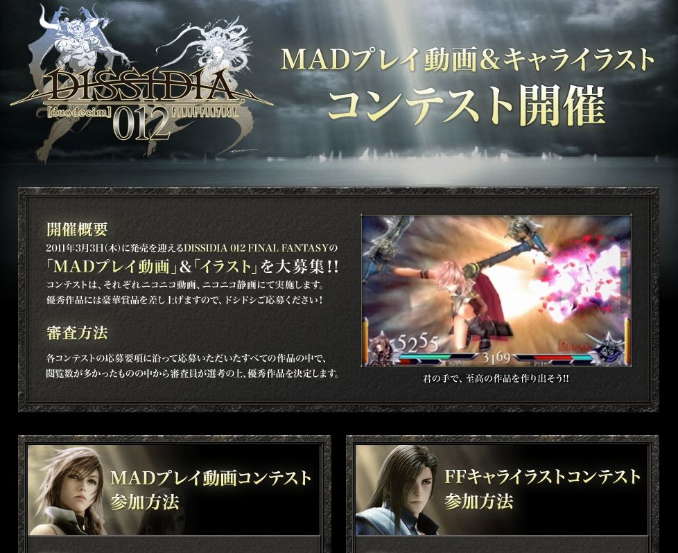 DISSIDIA 012 FINAL FANTASY MADプレイ動画&キャライラストコンテスト開催