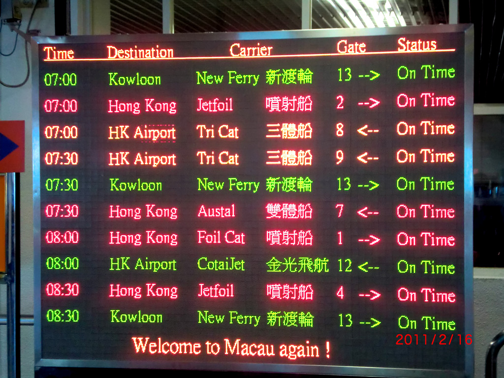 前回は香港空港から直でマカオ行きの船に乗ったが