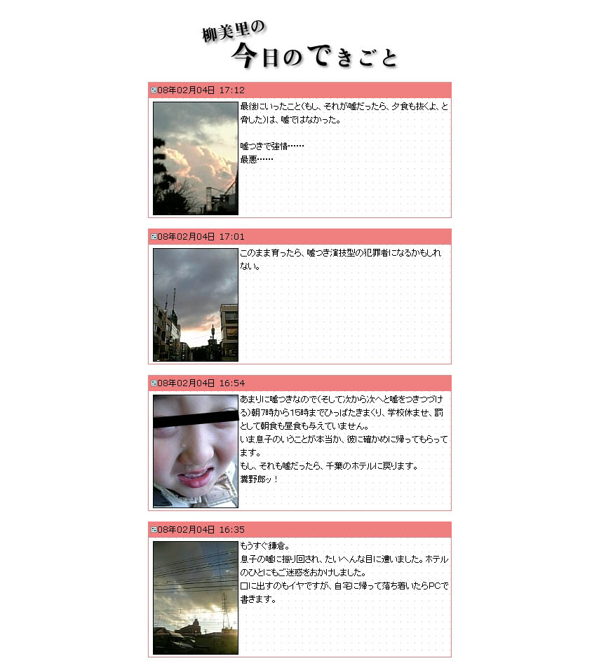 ¾®Àâ²È¤ÎÌøÈþΤ¡Ê¤æ¤¦¤ß¤ê¡Ë¤¬¼«¿È¤Î¥Ö¥í¥°¤Ç»Ò¶¡¤òµÔÂÔ¤·¤Æ¤¤¤ë¤È¼õ¤±¤È¤ì¤ë½ñ¤¹þ¤ß¤ËÂФ·¤Æ¥Í¥Ã¥È¾å¤ÇÈãÆñ¤ÎÀ¼¤¬µó¤¬¤Ã¤Æ¤¤¤ë¡£ÌäÂê¤È¤Ê¤Ã¤¿¥Ö¥í¥°¤ÏÌøÈþΤ¤¬½ñ¤¤¤Æ¤¤¤ë¡ØÌøÈþΤ¤Îº£Æü¤Î½ÐÍè»ö¡Ù¤È¤¤¤¦¥Ö¥í¥°¡£¤³¤³¤Ë¤Ï°Ê²¼¤Î¤è¤¦¤Ê½ñ¤¹þ¤ß¤¬¡¢