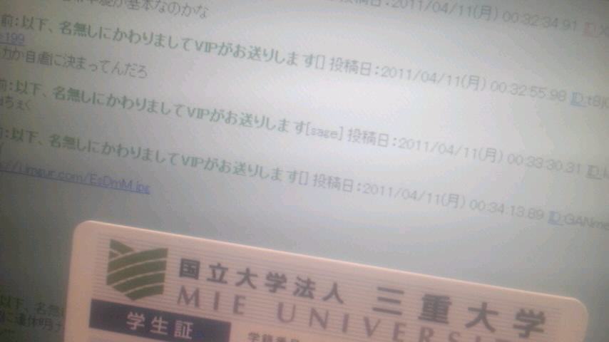 ネット上に転がっている大学の学生証の画像を印刷して、本物っぽく撮影してうpした奴、一人ぐらいいるんじゃね??ww