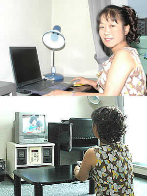 | 室内も明るい。 ホテルみたいに室内が暗くては作業が出来ません。当マンションでは全室にデスクライトがもちろん標準装備。目が悪くなる心配もありません。 「明るくて気持ちいいです!」 それに座ってくつろぐ時のテーブルと写真のようなデスクが使い分けれるのもいいですよね。 お部屋内で光ファイバー最大100bpsによるインターネットも無料でご利用頂けます。 |
