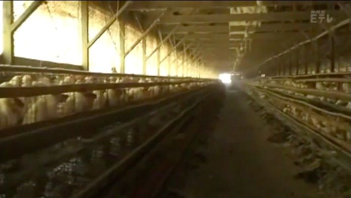 高橋清重さんは4万羽の鶏を飼育しています。一日3万個の卵を出荷してきました。しかし、原発事故が怒ってから養鶏場は危機にひんしてきました。鳥の餌が届かないのです。