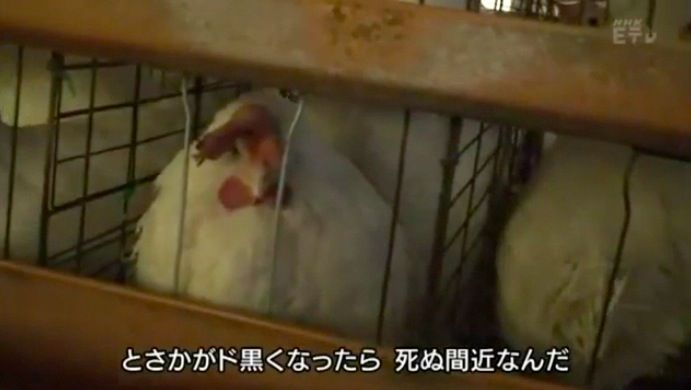 「トサカがドン黒くなったものは、死ぬー間近なんだ、これ。」
