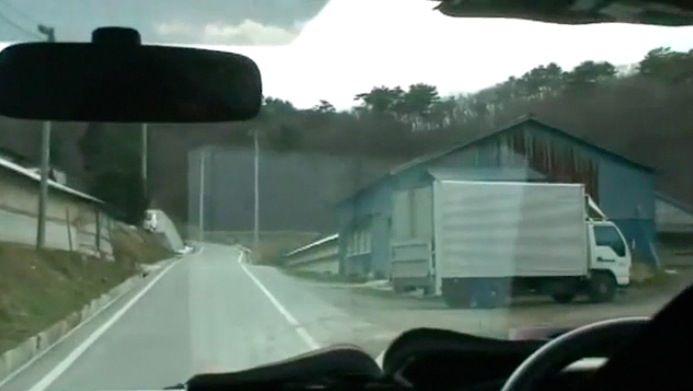 「そのトラックが止まっているところがそうなんですよ」