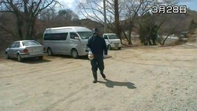 第3回目は、3月末の20キロから30キロ圏内の調査。業者からエサが来ない養鶏場では3万羽の鶏が餓死。赤宇木集会所では、飯舘村の3倍の放射線量が検出され、放射線衛生学を専門とする木村真三さんの情報提供により、自主的に避難が行なわれた。