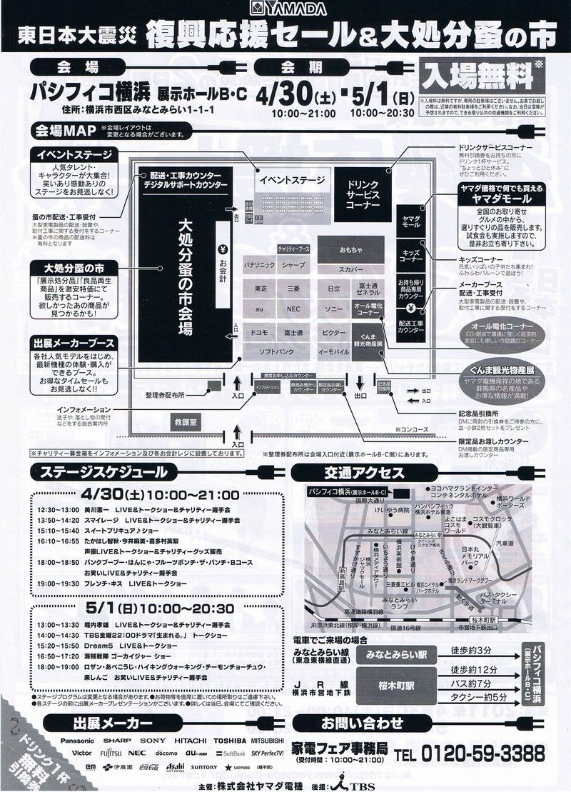 □ イベント名: 【ヤマダ電機 東日本大震災復興応援セール&大処分蚤の市 in パシフィコ横浜】