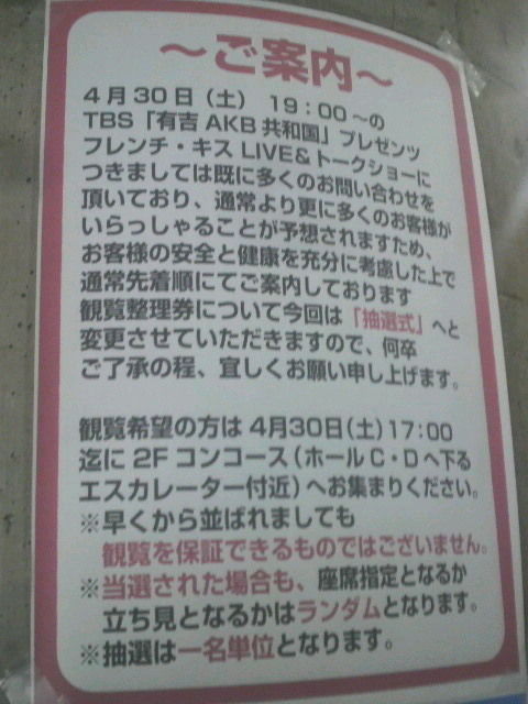 事前に,所属事務所のメールマガジン登録者から抽選で80人をステージエリアに招待するというので