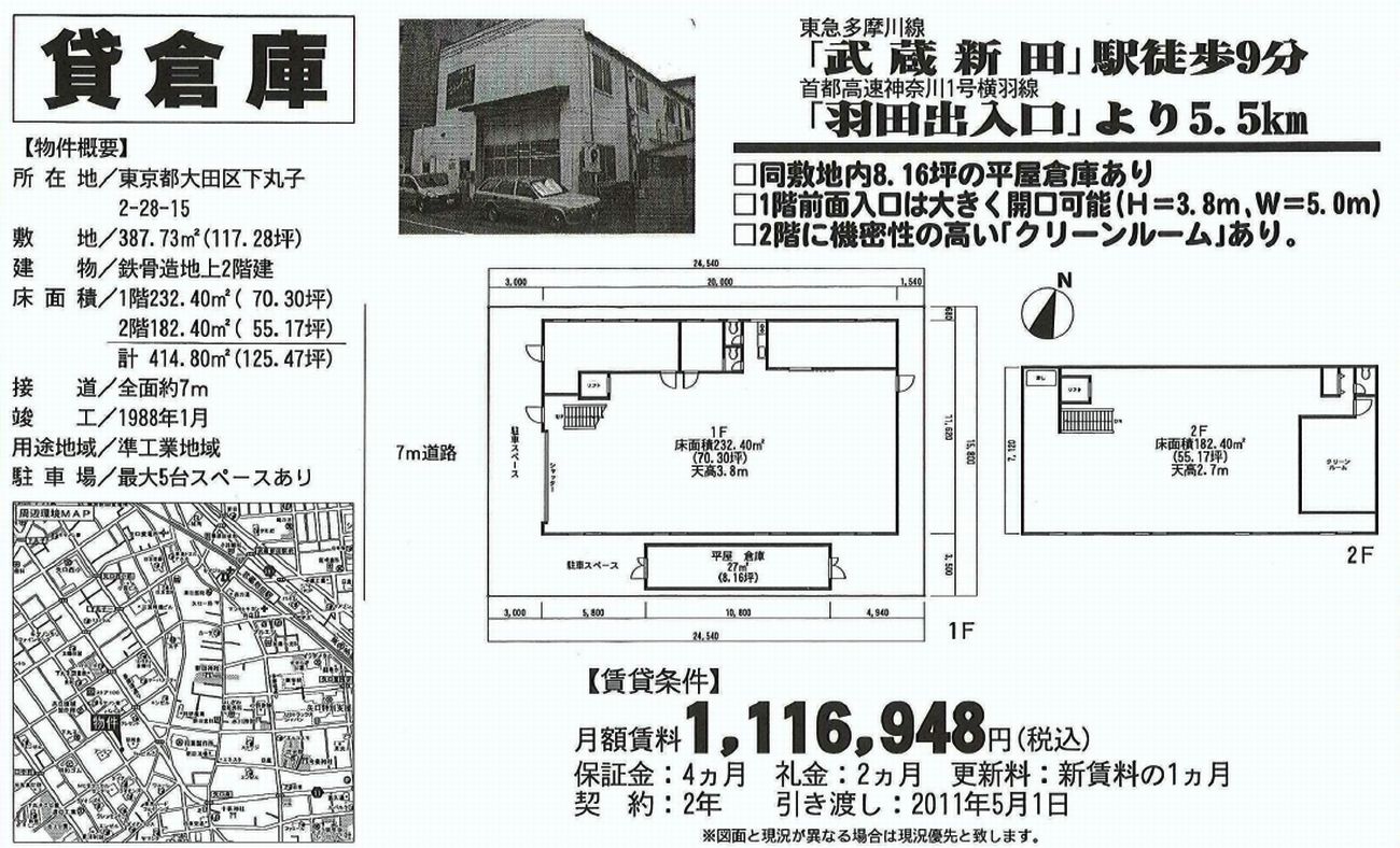 東京都大田区下丸子2-28-15 下丸子貸倉庫 詳細データ