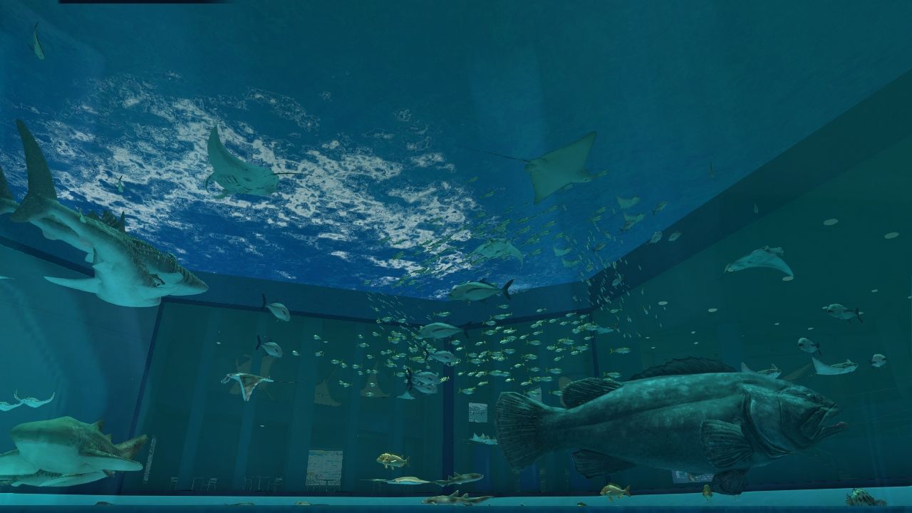沖縄美ら海水族館の実際の図面を元に再現された「VR 黒潮の海」を通じ、ユーザーの皆様には、巨大水槽のスケールの大きさや、飼育されている30 種類に及ぶ海洋生物の多彩な情報をお楽しみいただけます。