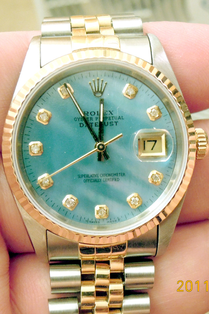 薄緑のシェル文字盤にした。